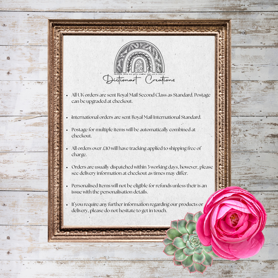 Simply tell us who would like to feature ensuring all names are spelled correctly at checkout as changes requested after production, may incur further charges.