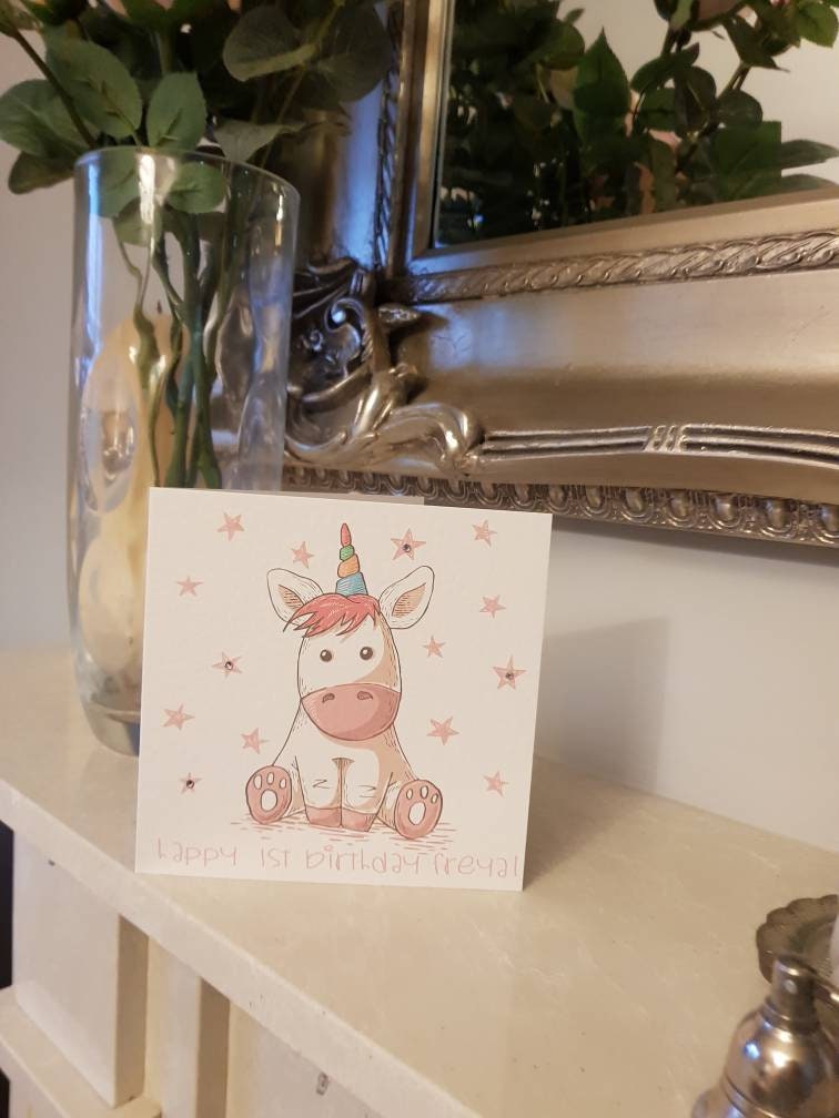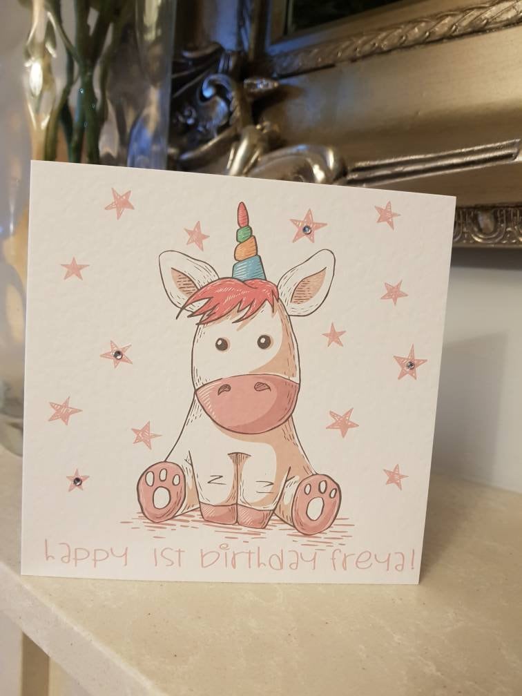Personalised Unicorn First Birthday Card/ Special Birthday Card/ Unicorn Birthday Card/ Girl's Birthday Card/ Personalised Birthday Card